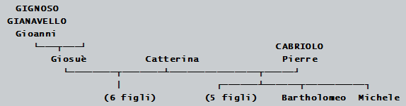 ─ Giosuè fu Gioanni GIGNOSO ossia GIANAVELLO da Luserna (patrigno di sopra detto Bartholomeo). Viene dichiarato che Catterina ha avuto 7 figli dal primo matrimonio e 6 figli dal secondo matrimonio;